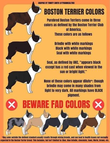 ❌ We do NOT breed “colored” Boston Terriers or any mixed/designer breeds.